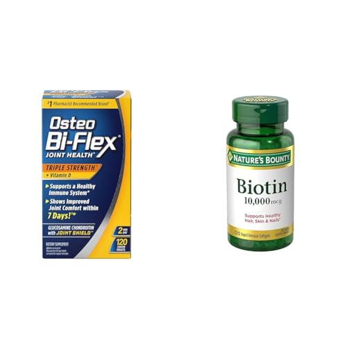Specification: Osteo Bi-Flex Triple Strength with Vitamin D Glucosamine Chondroitin Joint Health Supplement, Coated Tablets, Red, 120 Count & Nature’s Bounty Biotin, Supports Healthy Hair, Skin and Nails