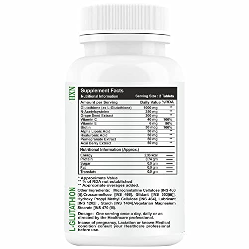 Specification: OTAA 1000mg Glutathione Tablets For Skin Whitening. L-Glutathione, Vitamin C, E, Hyaluronic Acid, Alpha Lipoic Acid, Collagen Supplements For Women’s Health & Face Hydration -90 (Sugar Free, Pack 1)