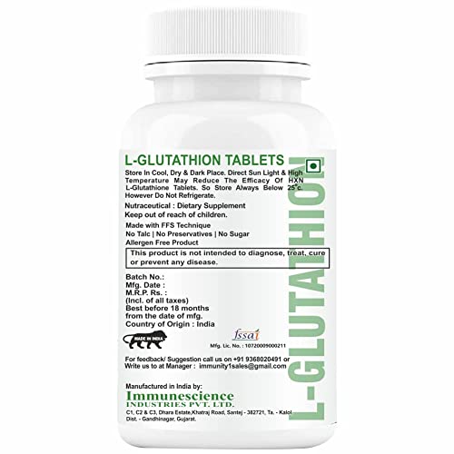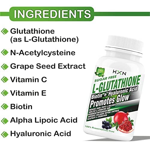 POWERFUL ANTIOXIDANT – Glutathione (GSH) promotes in the reduction of oxidative stress caused by free radicals. It’s also been said to assist detoxify the body and boost the liver, immune system, and cardiovascular health. Glutathione aids in the neutralisation and elimination of free radicals found in the environment that can cause cellular damage, wrinkling, and discolouration in the skin.