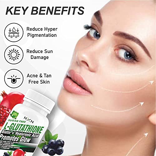 1000mg Glutathione Tablets For Skin Whitening. L-Glutathione, Vitamin C, E, Hyaluronic Acid, Alpha Lipoic Acid, Collagen Supplements For Women’s Health & Face Hydration -90 (Sugar Free, Pack 1)