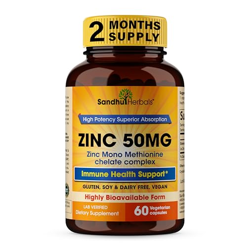 Specification: Sandhu Herbals Zinc 50mg Supplement| Made in The USA| 60 Vegetarian Capsules| Highly Absorbable|Healthy Skin, Immune System & Antioxidant Support|