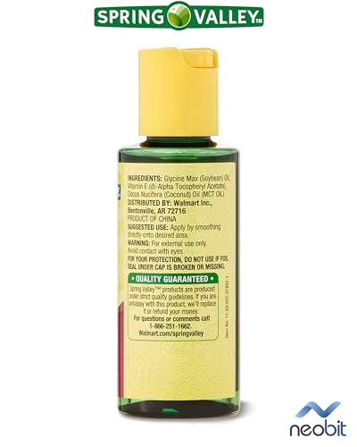 Enhance your skincare routine with Spring Valley Vitamin E Oil with Keratin, a premium blend designed for topical use. This 2 fl oz bottle contains Vitamin E oil, enriched with 12000 IU, along with the added benefit of Keratin, known for its supportive role in skin health. The inclusion of natural ingredients like Coconut Oil and Soybean Oil further enriches this formula, making it a unique choice for those seeking a nourishing skin care solution. The Vitamin E Oil by Spring Valley is crafted to cater to all skin types. Its gentle formulation is ideal for daily use, allowing you to smoothly apply it directly onto your skin or mix it with your favorite skincare products for an extra nourishing boost. This product is specially designed to support a radiant skin appearance, thanks to its rich blend of ingredients. In addition to this skin-nourishing oil, the bundle includes the ‘Healthy Life, Simple Choices’ A Neobit Guide. While the guide offers practical tips for a balanced lifestyle, the focus of this package is on the Spring Valley Vitamin E Oil with Keratin. This oil is a testament to Spring Valley’s commitment to quality, produced under strict guidelines to ensure a high-quality product. Spring Valley understands the importance of a healthy, balanced lifestyle and the role of natural products in achieving this. The Vitamin E Oil with Keratin is an embodiment of this philosophy, offering a simple yet effective approach to skincare. Its easy application and natural ingredients make it a suitable addition to any daily skincare regimen. Please remember, statements regarding dietary supplements have not been evaluated by the FDA and are not intended to diagnose, treat, cure, or prevent any disease or health condition. The ‘Healthy Life, Simple Choices’ A Neobit Guide is provided for informational purposes only. For specific health concerns or questions about using a new skincare product, it’s always wise to consult with a healthcare professional.