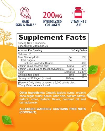 Specification: SUNNY SAM Beauty Collagen Gummies for Women & Men – 60 Chewable Vitamins, 30-Day Supply – Enhanced Hair Skin and Nails Gummies – 2500mcg Biotin, Vitamin A, Zinc Supplement – Natural Berry Flavor
