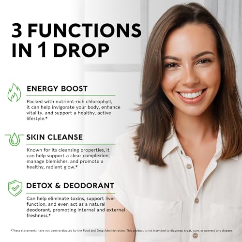 𝗡𝗮𝘁𝘂𝗿𝗮𝗹 𝗗𝗲𝘁𝗼𝘅 & 𝗖𝗹𝗲𝗮𝗻𝘀𝗲 – Experience the detoxifying and cleansing properties of liquid chlorophyll. It supports your body’s natural detoxification processes, helping you feel energized. Experience a natural and sustained energy boost with our chlorophyll liquid drops. This vegan chlorophyll liquid delivers a clean source of energy to keep you feeling vibrant throughout the day.