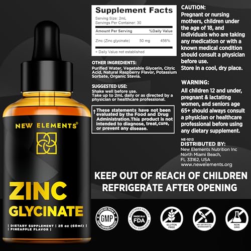 Zinc Supplements 50mg | Liquid Zinc Supplement | Zinc Glycinate Drops for Adults | Supports Immune Health | Metabolism | Skin Care Supplement | Non-GMO | Vegan | Gluten-Free
